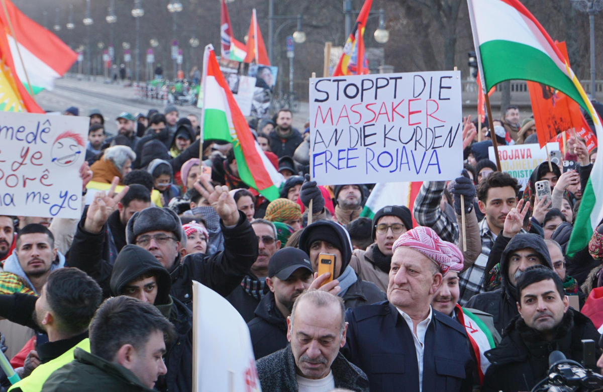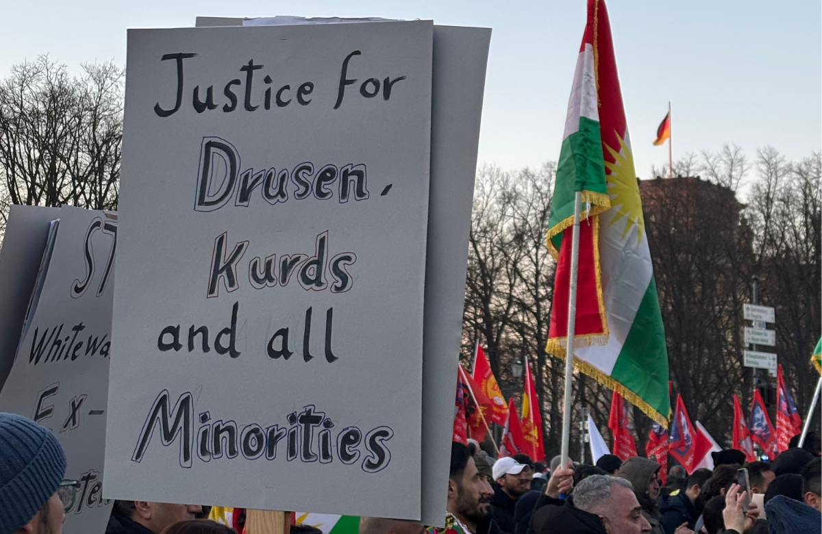 Wir danken Kurdische Gemeinde Deutschland e.V., Alevitische Gemeinde Deutschland, Union der syrischen Alawiten in Europa e.V., Gesellschaft für Bedrohte Völker e.V., Städtepartnerschaft F’Hain-Kreuzberg – Derik e.V. und vielen weiteren für die gemeinsame Ausrichtung der Demonstration sowie allen Redner:innen und Teilnehmer:innen.
