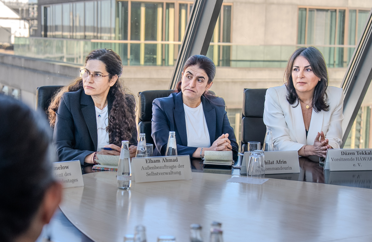 Auf Einladung des Vizepräsidenten des Deutschen Bundestages Bodo Ramelow (Die Linke), der außenpolitischen Sprecherin der Bundestagsfraktion Cansu Özdemir (Die Linke) sowie HÁWAR.help fand im Deutschen Bundestag ein Austausch zwischen Vertreter:innen der Demokratischen Selbstverwaltung Nord- und Ostsyrien und Bundestagsabgeordneten demokratischer Fraktionen statt.