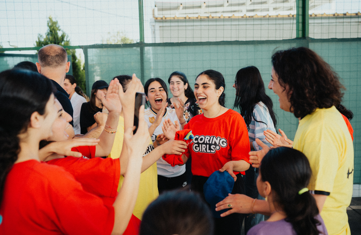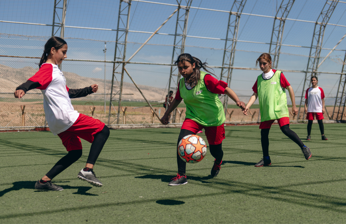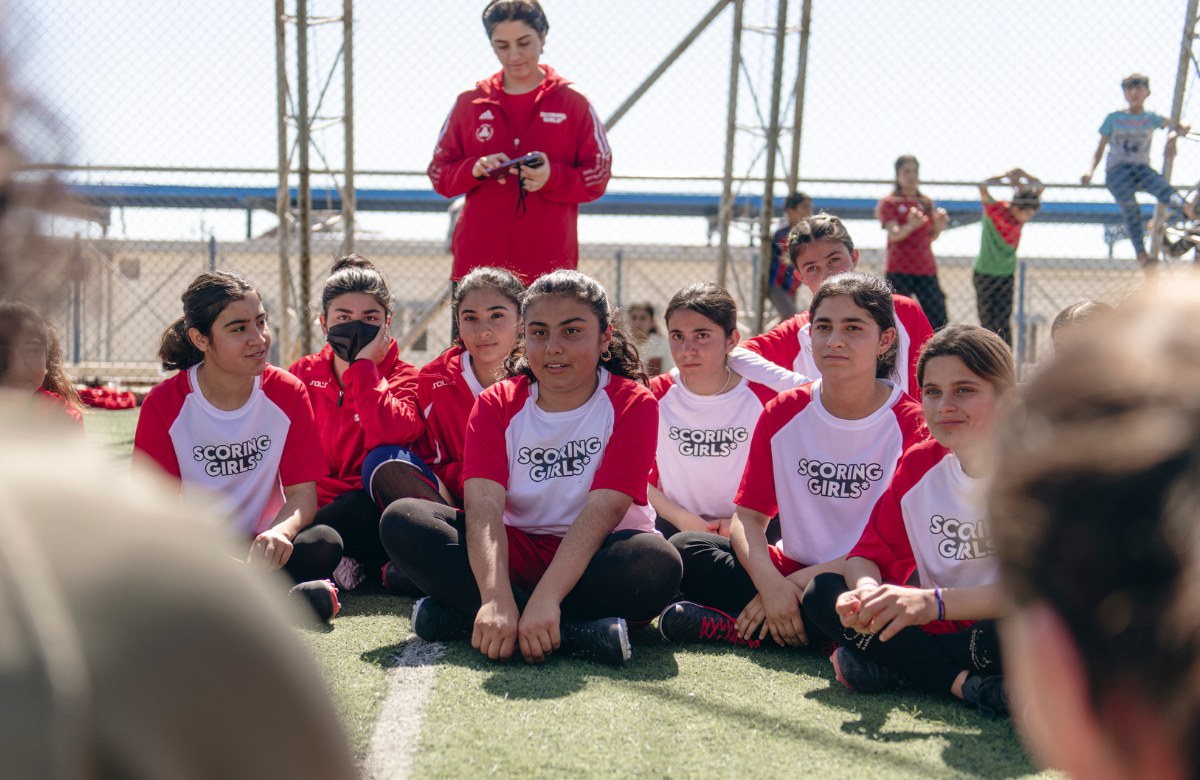 SCORING GIRLS* Iraq is an open and free program for girls between the ages of 8 and 18 who live in internally displaced persons camps or in host communities in the Kurdistan Region of Iraq. We use football as a starting point to create safe spaces where girls can build self-confidence, experience community, and strengthen their social skills. We see ourselves as an inclusive, multi-ethnic, and multi-religious project that supports girls, broadens their perspectives, and empowers them to actively participate in social life.